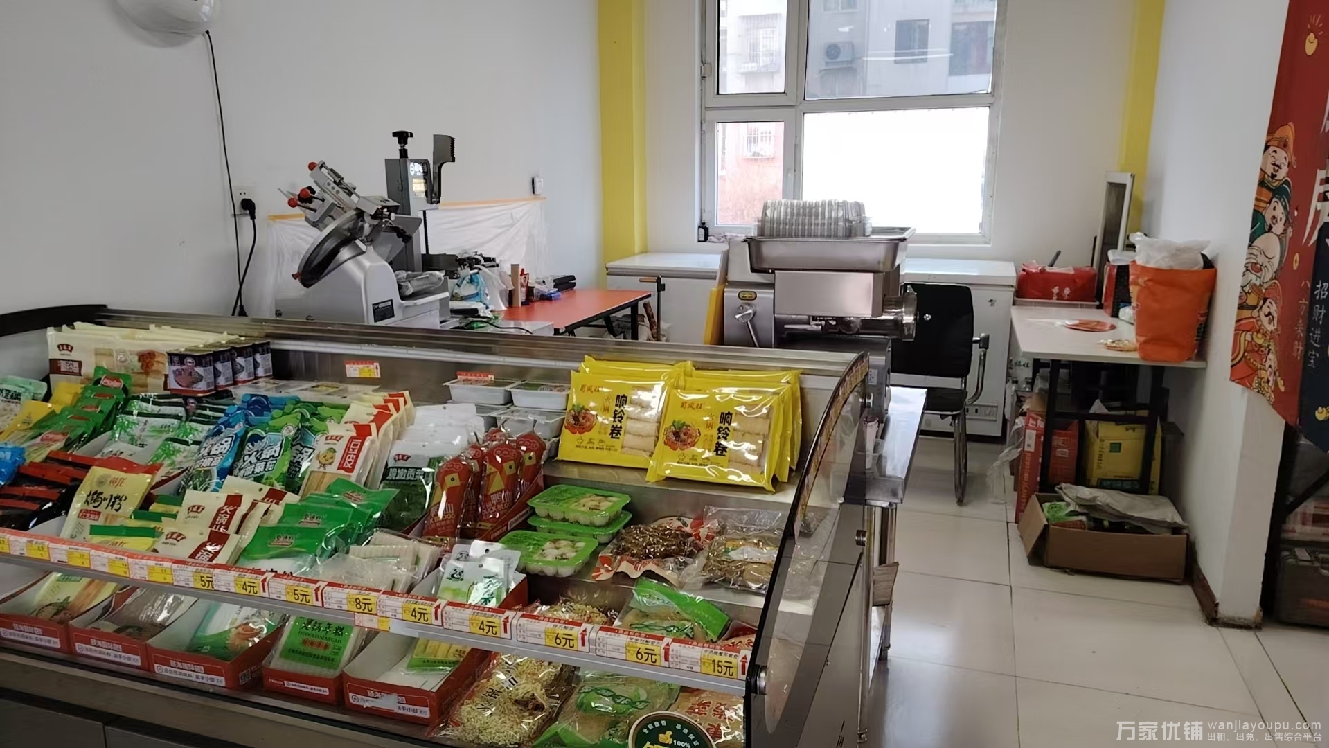 本店位于金州区三十里堡友兰佳苑八号楼临街商铺,地理位置优越,交通便利,成熟居民区围绕,客源稳定。临近地铁,125中学,第三人民医院,购物中心等,店内环境干净整洁,户型方正明亮,设施设备齐全(削片机,锯骨机,吊肉柜,冰箱冰柜等)手续齐全,客源稳定,口碑好,货品质量高,面积85平方米,大门头,无遮挡,门口停车位充足,可外摆,超大开间,使用面积大,后间有库房,租金一年3万,转让费包含4个月租金,接手就可经营,也可以加项改项,一人就可看店,因个人原因忍痛转让,现正是火锅食材超市旺季,有意者电联详谈,欢迎实地考察,具体事宜面谈
