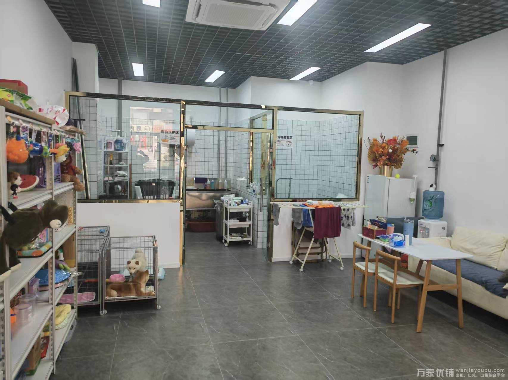 店内宠物美容、洗护、用品等设施设备一应俱全,水电配套完善,门口空间宽敞,自带停车位,牌匾醒目无遮挡,曝光度高。目前经营宠物生活会馆,接手就能直接营业;也可灵活改做其他生活服务类、零售类项目,无行业限制。